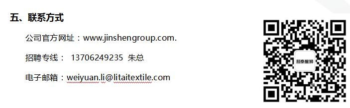01 | 纺织工程,棉纺工艺 | 17 | 不限 | 本科及以上 | CET4及以上 | 不限 | 工艺工程师 |